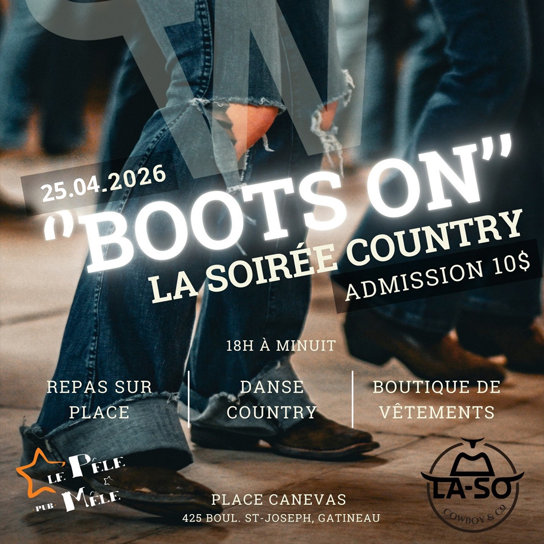 Soirée country avec danse en ligne, boutique sur place et option repas.